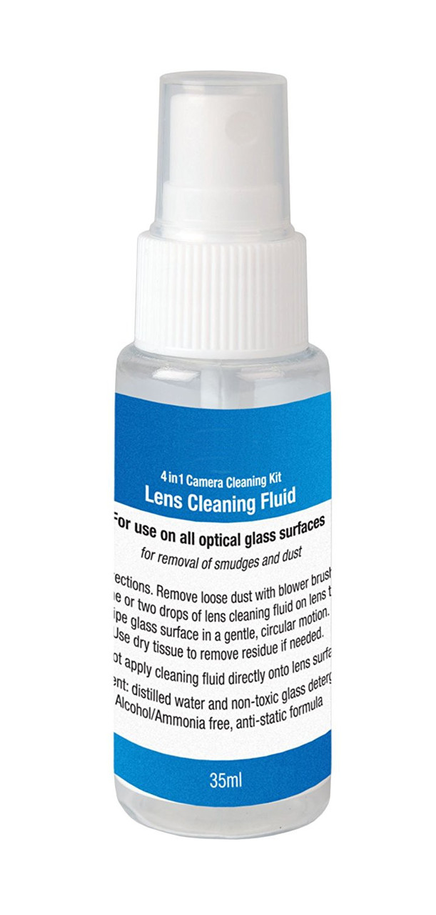 • Пляшечка з рідиною для чищення оптики: безпечна для всіх типів лінз, видаляє бруд, пил, відбитки пальців та інші забруднення.
