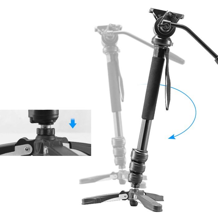 Відеомонопод з головою та поворотно-похилою опорою для зйомки за допомогою бездзеркальних та DSLR камер. Цей монопод складається з 4 секцій із фіксаторами-кліпсами. Спеціалізована голова дозволяє максимально плавно рухатись камерою.