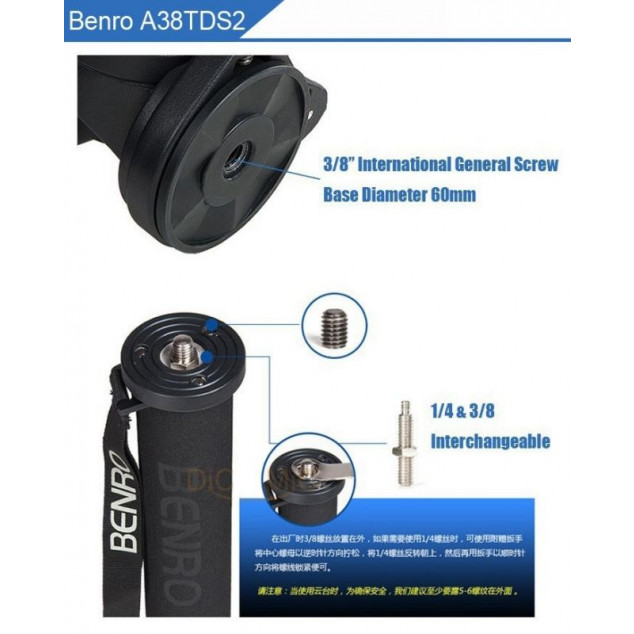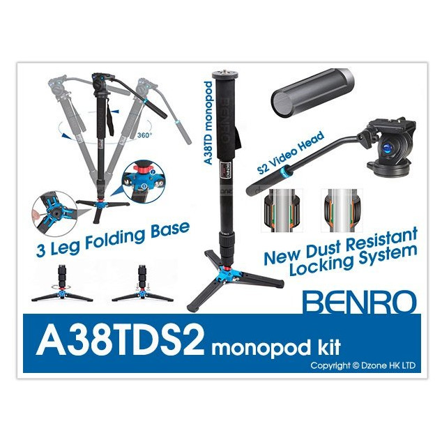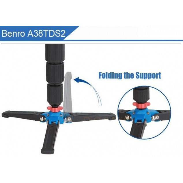 Особливість цієї моделі — тринога Benro ST1, розташована внизу монопода. Вона дозволяє моноподу Benro A38TDS2 максимально зручно фіксуватися в одній точці, при цьому монопод може змінювати кут нахилу та одночасно обертатися на 360°. Ніжки триноги можуть складатися для зручності транспортування та сумісні з іншими моделями моноподів Benro.