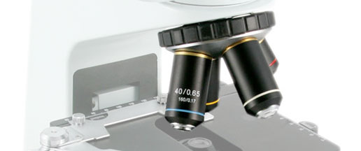 Объективная линза - это начало процесса увеличения. В большинстве микроскопов имеется несколько различных объективов, обеспечивающих разное увеличение - например, 10x, 40x и 100x. Различные объективы устанавливаются на носовой окуляр (также называемый турелью). Насадка вращается, что позволяет пользователю быстро переходить от одной мощности к другой. Как правило, имеется клик-стоп или какой-либо механизм для фиксации объектива в правильной ориентации непосредственно над светом и под окуляром.