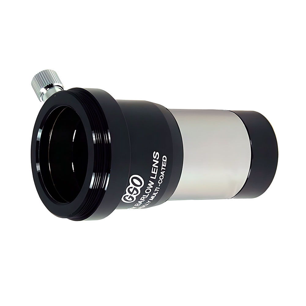 Лінза Барлоу GSO 2x, 1.25" з Т-адаптером для телескопа призначена для збільшення фокусної відстані телескопа, що дозволяє добитися великих збільшень. Крім того, використання лінзи Барлоу забезпечує отримання ширшого поля зору. Дана лінза Барлоу має двухлинзовую ахроматичну оптичну конструкцію для зменшення прояву хроматизму. На оптичні поверхні нанесено якісне багатошарове просвітління. Коефіцієнт збільшення - 2х. Призначена для використання з окулярами стандарту 1.25". Наявність Т-адаптера дозволяє приєднати дзеркальний фотоаапарат до телескопа для астросъемки в прямому фокусі.