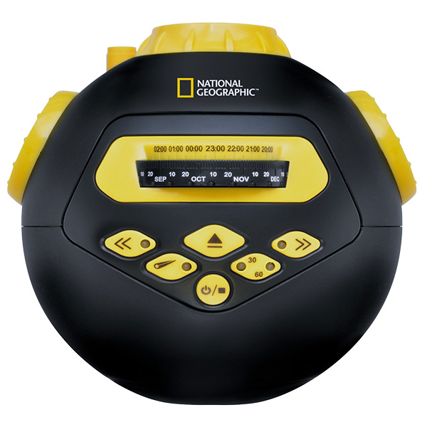 Планетарій National Geographic Junior Deluxe — це ідеальний пристрій для здійснення захоплюючої подорожі нічним небом прямо у вас вдома. Завдяки цьому планетарію ви зможете спостерігати понад 8000 зірок і 61 сузір'я, які проектуються на стелю чи стіну з високою точністю. Окрім цього, проекція обертається у горизонтальній площині, створюючи ефект реалістичного зоряного неба, а через усе небо пролітають падаючі зірки. Ви можете встановити конкретну дату і час, щоб побачити унікальну конфігурацію зоряного неба для обраного моменту.