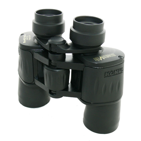 Бінокль Konus KonusVue 8x40 WA - недорогий бінокль з повністю металевим корпусом, армованим нековзним гумовим покриттям чорного кольору. Відмінною особливістю цього бінокля є досить мала вага і відносно невеликі габарити, як для бінокля з класичною оптичною схемою. В оптичній конструкції бінокля використовуються ширококутні окуляри, що забезпечують дуже широкий кут огляду, отже, бінокль чудово підходить для проведення панорамних спостережень, а також спостережень за рухомими об'єктами. Цей бінокль може виявитися корисним мисливцеві, туристу, орнітологу тощо. Завдяки високій світлосилі бінокль придатний для спостережень як вдень, так і в сутінках. Бінокль побудований за класичною схемою із застосуванням Porro призм зі скла BK7, на лінзи нанесене спеціальне покриття, що просвітлює, для поліпшення яскравості та чіткості зображення.