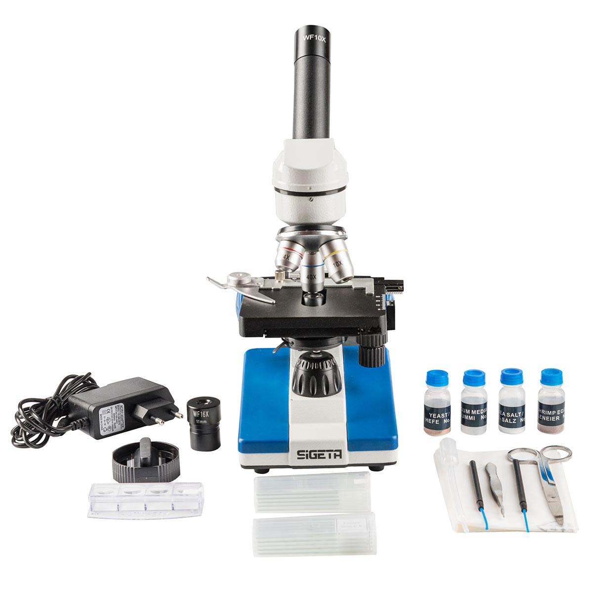 Мікроскоп SIGETA UNITY PRO 40x-640x LED Mono – це монокулярний біологічний мікроскоп з міцним металевим корпусом і подвійним LED-підсвічуванням, що ідеально підходить для навчання у шкільних лабораторіях або аматорських досліджень на виїзді. Він оснащений трьома об'єктивами (4x, 10x, 40x) і двома ширококутними окулярами (10x і 16x), що дозволяє досягти максимального оптичного збільшення у 640 крат. Завдяки такому збільшенню можна детально вивчати будову клітин рослин, тварин та зразків тканин людського організму.