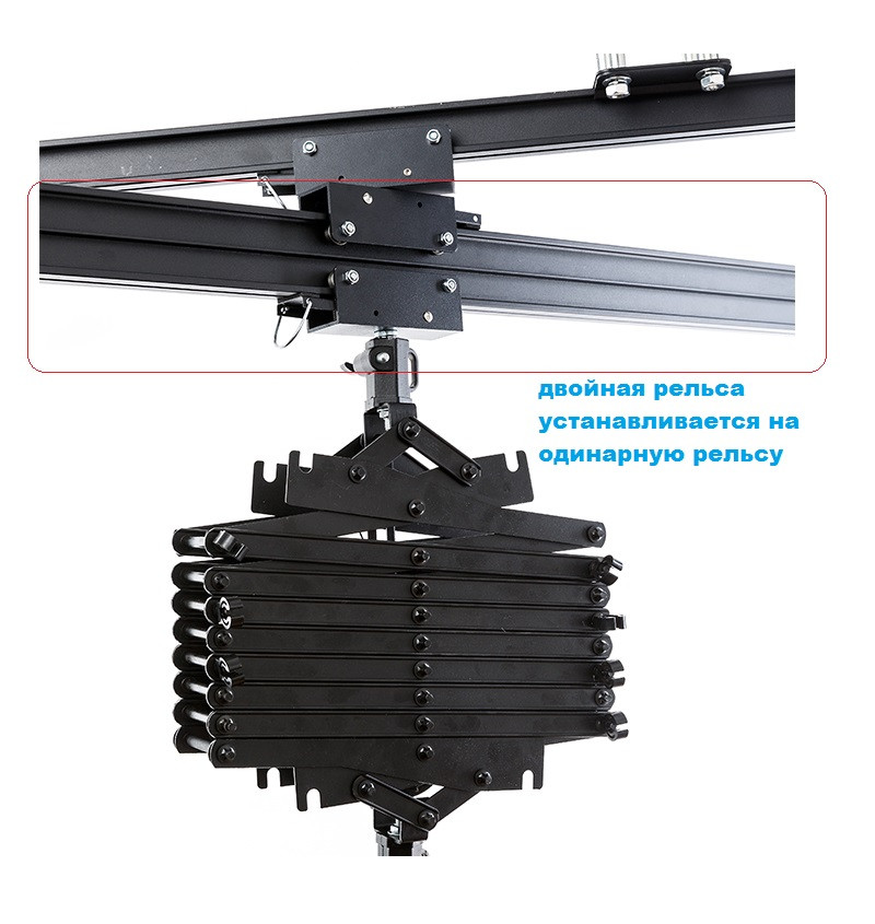 - Можливість нарощування: Рейки можуть з'єднуватися між собою для створення систем більшої довжини, адаптованих до розмірів студії.