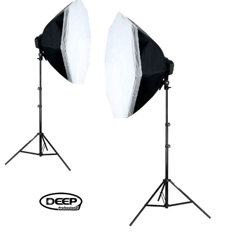 Набір постійного світла Deep з двома октабоксами діаметром 70 см і двома потужними флуоресцентними лампами по 135 Вт кожна — це ефективне рішення для організації якісного студійного освітлення. Завдяки збільшеному діаметру октабоксів у 70 см, світловий потік розсіюється ще м'якше і рівномірніше, що дозволяє мінімізувати тіні й забезпечити природну передачу кольору. Такий набір стане чудовим інструментом як для предметної фотозйомки, де важлива деталізація і баланс світла, так і для портретної або відеозйомки, зокрема ведення блогів, інтерв'ю чи створення навчальних роликів.