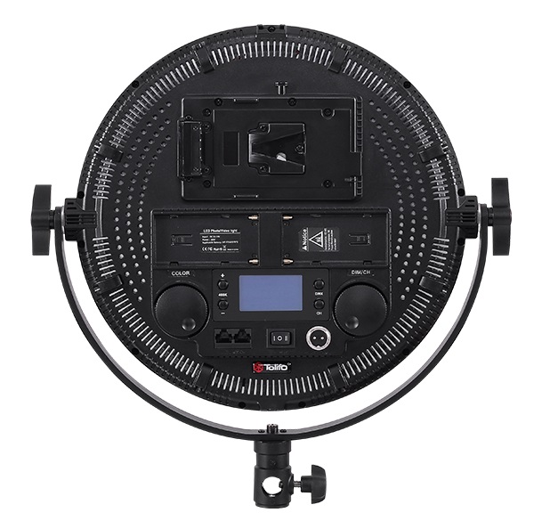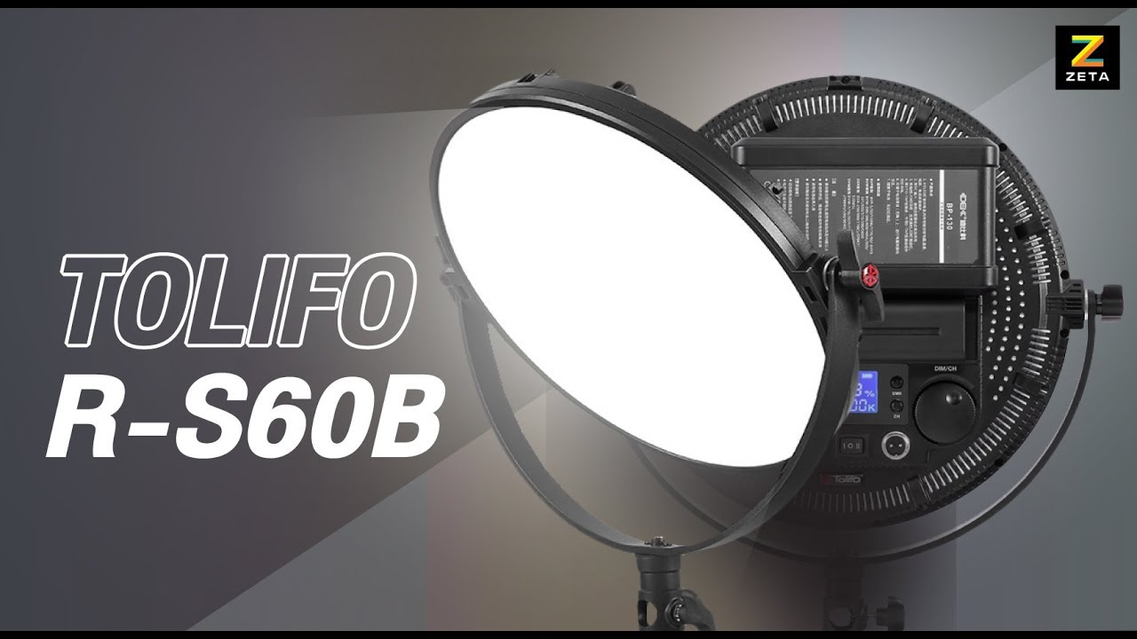 Світлодіодна панель Tolifo R-S60B має круглу форму, що забезпечує більш рівне світло і правильний відблиск у кадрі. Освітлювач має змінну колірну температуру в діапазоні від 3200 до 5600K, індекс кольору становить CRI 95+, потужність 60 Вт.